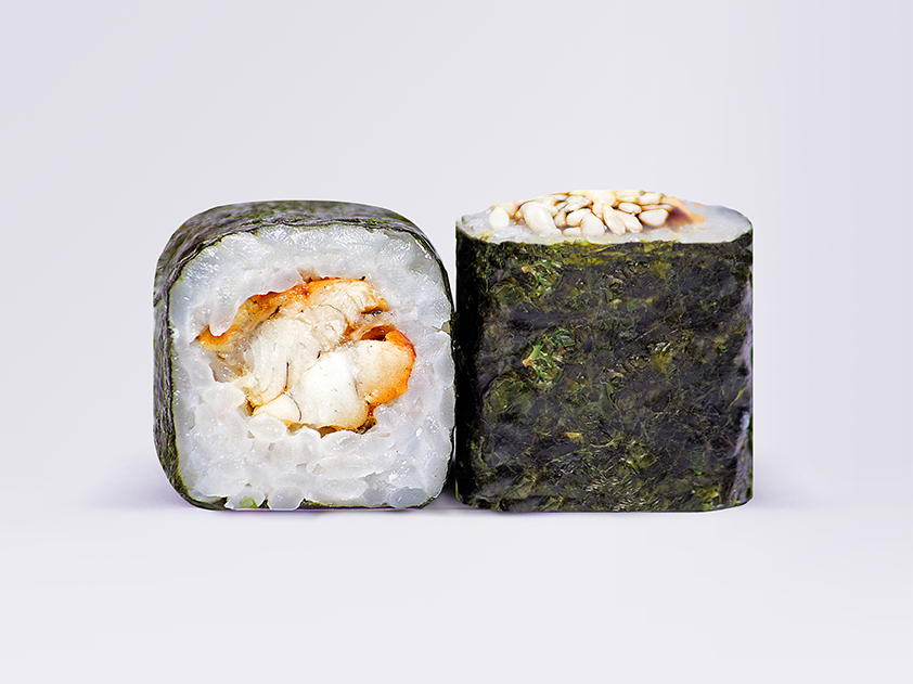 Угорь, рис, нори, кунжут, соус унаги